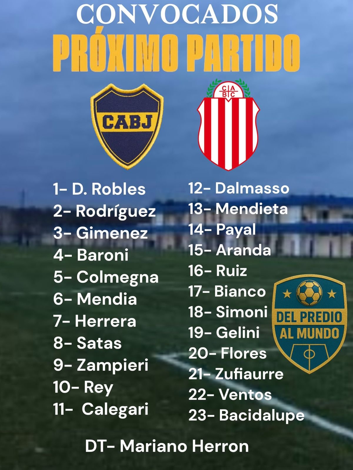 Mariano Herron definió los 23 jugadores que enfrentarán mañana a Barracas Central. Vuelven a la lista Leonel Flores, que el sábado hizo dos goles en la Quinta, y Matías Baroni.